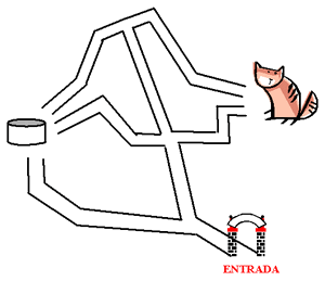 Se introducen 12 ratones a la entrada de un laberinto, que tiene dos salidas: en una de ellas hay un queso y en la otra un gato.