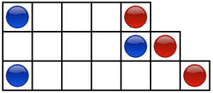 Es un juego para dos jugadores: uno juega con las fichas azules y el otro con las rojas. Para jugar, cada jugador mueve en su turno una de sus fichas, hacia adelante o hacia atrás, a lo largo de la fila en que está la ficha. Puede moverla una o varias casillas a la vez, pero nunca puede rebasar la posición de la ficha del contrario, ni cambiar de fila. Gana la partida el jugador que consiga inmovilizar todas las fichas del contrario, es decir, que este no pueda mover ninguna de sus fichas cuando le toque jugar.