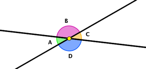 Al cortarse dos rectas se forman 4 ángulos, como puedes ver en la figura: