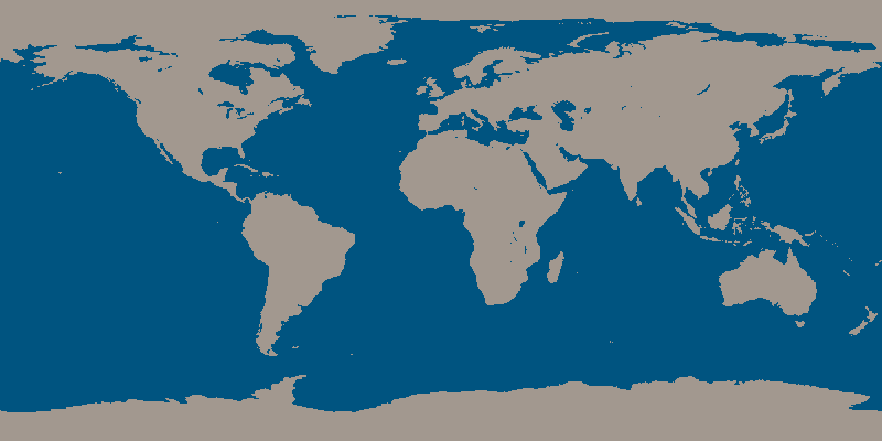 En este caso, se ha "pintado" la superficie esférica como si la Tierra fuera un cilindro que rodase sobre el papel (esta forma de proyectar se llama proyección cilíndrica y, aplicada a la Tierra, se conoce como proyección de Mercator). Observa que el Ártico (cuya masa de hielo aparece representada como un sólido más) y la Antártida aparecen exageradísimos, pues tanto el Polo Norte como el Polo Sur ocupan todo el largo de la imagen, en vez de un punto.
