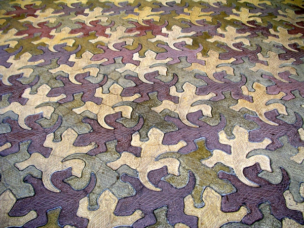 Así que si vemos un mosaico que nos gusta mucho y queremos realizar nuestra propia versión con otros dibujos y colores pero manteniendo el mismo juego visual de simetrías, lo primero que tendremos que hacer es averiguar a qué grupo de isometrías corresponde ese mosaico.