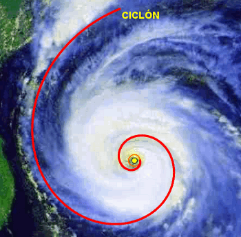 las ramas del ciclón con una espiral logarítmica, en sentido horario, con