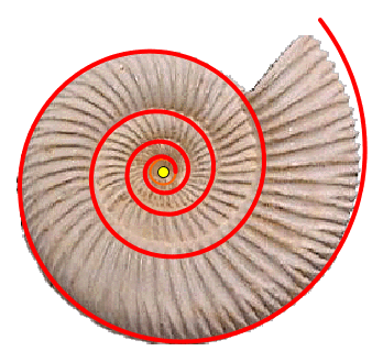 imagen se muestra el ajuste del nautilus con una espiral logarítmica, en sentido horario,