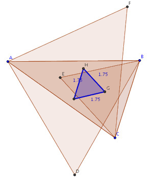 si los triángulos equiláteros se construyen hacia el interior del triángulo: