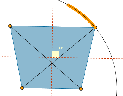pertenece a una circunferencia centro el vértice opuesto y radio la diagonal