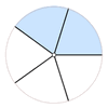 En la figura siguiente hemos dividido el círculo (que representa a una tortilla) en 5 partes iguales y se han coloreado dos de ellas: para expresar qué parte del círculo representa la parte coloreada empleamos la  fracción 2/5. Decimos que el sector circular coloreado representa 2/5 del círculo (2/5 de la tortilla).