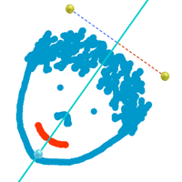 5. Borra los rastros y elige el color amarillo. Asegúrate de que está elegido el modo "Pinta", pero no muevas el punto P. En lugar de ello, agarra el eje de simetría (no muevas A ni B, sino el propio eje) y muévelo en todas direcciones. ¿Qué sucede? ¿Por qué? (Intenta explicarlo con tus palabras.)