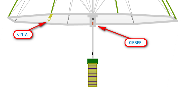Abre y cierra la sombrilla o paraguas como abrirías y cerrarías un paraguas real, arrastrando la perforación marcada en rojo. Para girarlo, arrastra el punto donde está cosida la cinta de cierre.