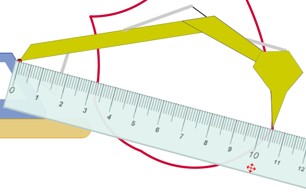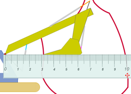 la realidad. La regla marca 10.5 cm desde el punto rojo al punto más alejado