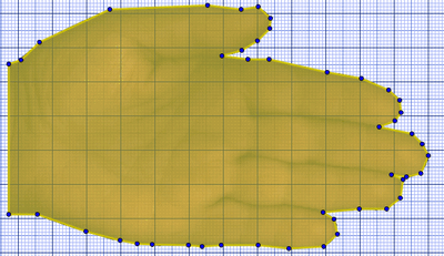 la mano. Este polígono está formado por 226 cuadrados de 25 mm2